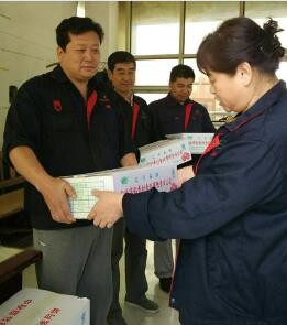 9月24日上午,黨委書記兼工會主席孟立在給員工發月餅祝全體員工中秋節快樂!