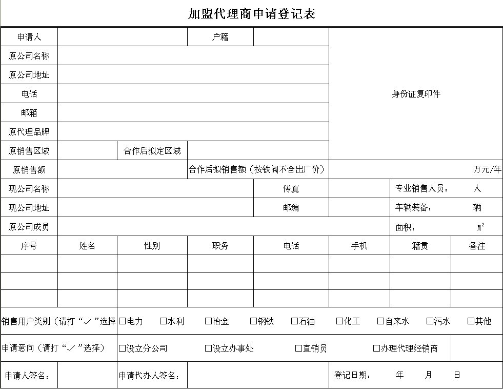 加盟代理商申請登記表
